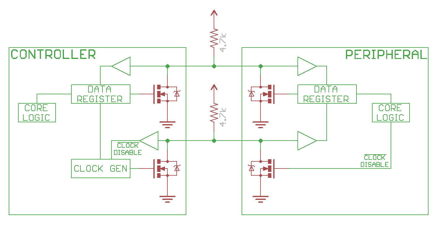 - Open-drain / Open-collector: Thiết bị chỉ có thể kéo xuống mức thấp, mức cao được giữ nhờ điện trở kéo lên (pull-up resistor).